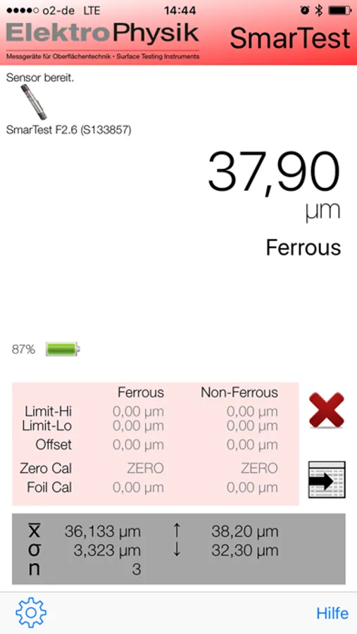 The SmarTest app shows the current measuring values, the statistical evaluation and helps store control and calibration of the sensor.