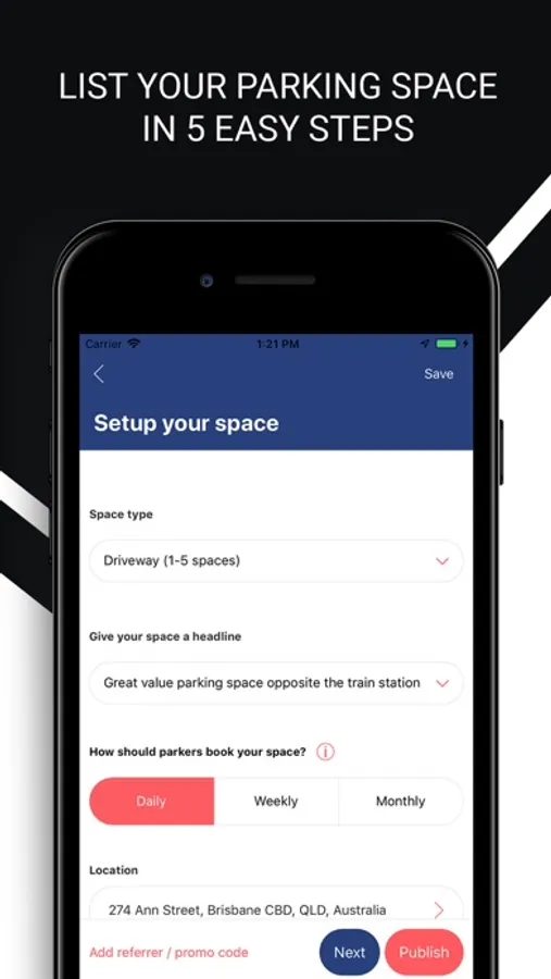 List your parking space: