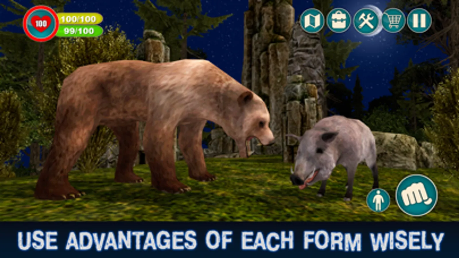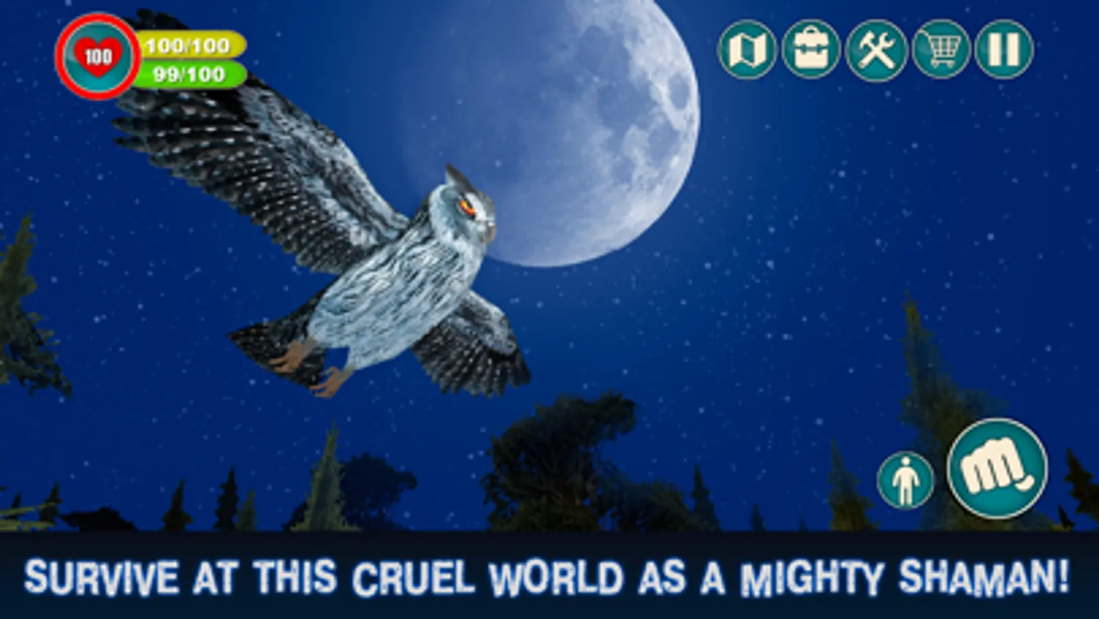 Mind your shaman indicators - health, energy, and fullness. Never let one of these drops – it will let you no chance to survive! Find or craft special survival tools – weapons, axes, fishing rods or just sticks to making campfire and torches. Never go too far from your hideout after sunset in human form – hungry predator can wait for you over every tree or bush! Use the form of the owl during the night to do your deeds! Fight for your life against wildlife with Wild Soul Changer: Animal Survival 3D!