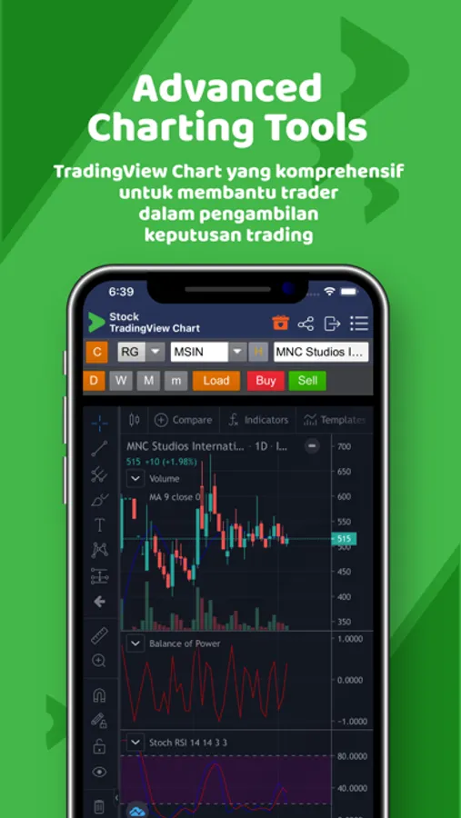 Charting yang komprehensif, dilengkapi dengan berbagai drawing tools dan indikator teknikal yang dapat disesuaikan dengan kebutuhan pengguna.