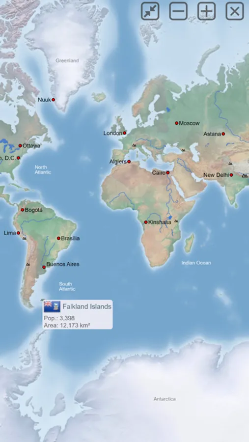 • Search for countries, major cities, rivers, deserts, lakes, mountains or coordinates