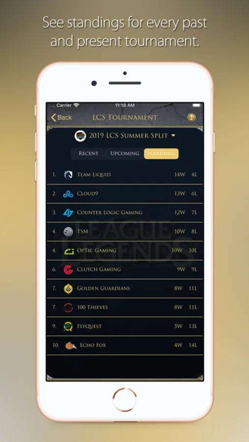 - Tournaments section; With LCS you can watch league of legends esports live streams and last matches you want at any time, while learning the days and hours of the upcoming LoL matches, you can easily follow the League of Legends Championship rankings and standings!