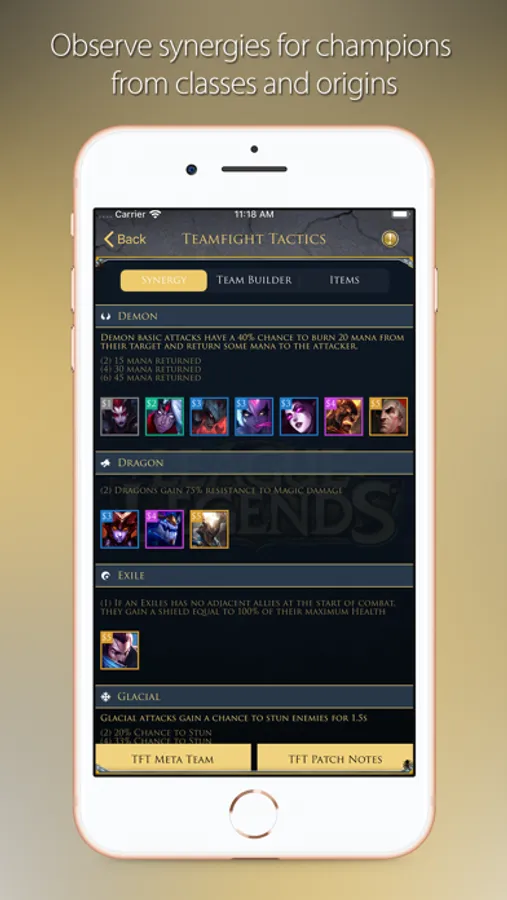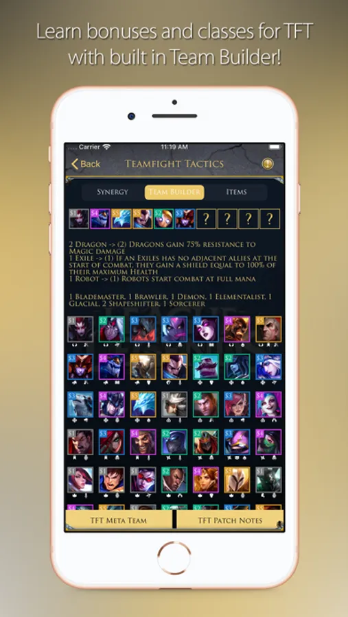 - Teamfight Tactics (TFT). Champion and class/origin synergy, Team Builder for LoL TFT, Recommended items for all champions.
