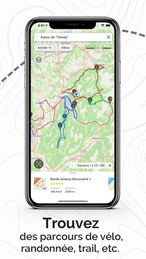 - Search for routes close to your position or within the zone of your choice.