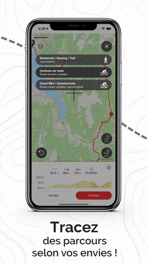- Find all your programmed routes on the OpenRunner website and let yourself be guided by app to follow them in the field.