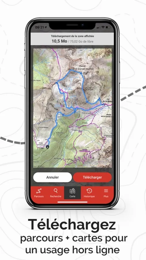 The app has a feature that lets you download topographic maps to ensure that these can be displayed out in the field, even in zones that are not covered by a 3G/4G network. An off-line mode is also available to limit network access to a strict minimum and preserve your phone battery as much as possible when using the app.
