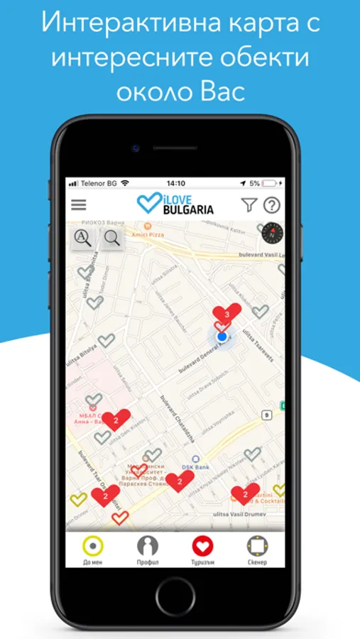 - Да използвате интерактивна карта, която да Ви заведе до желаните забележителности или търговски обекти