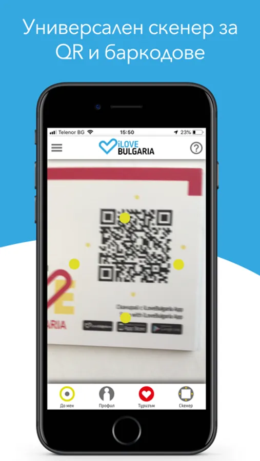 - Чрез сканиране на QR кода да получите визуална информация (и мултиезичен аудио гид) за различни забележителности, бизнеси и продукти на своя мобилен телефон