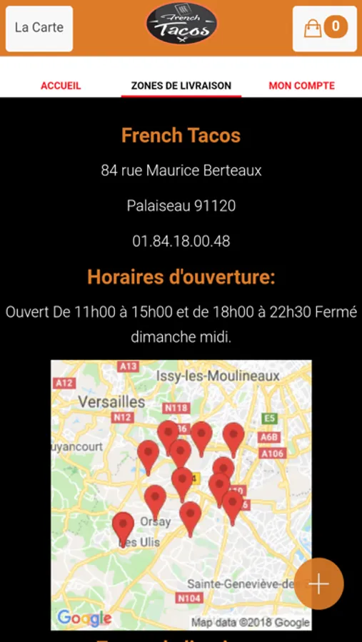 L'application Iphone/Ipad de French Tacos vous permet de commander en ligne ou par téléphone via votre application . Vous pouvez consulter notre carte et choisir vos produits .