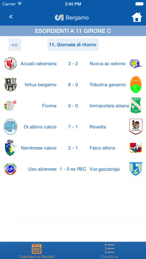 In rosso sono visualizzati i risultati provvisori segnalati dai responsabili di squadra mentre in blu le informazioni accertate dal CSI di Bergamo.