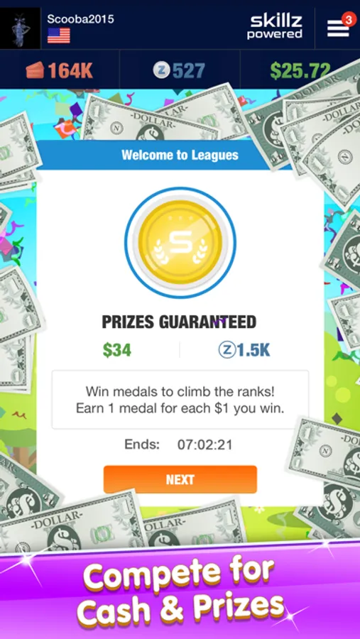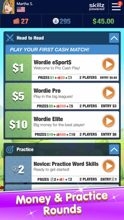 • Face off against players of similar skill on the Skillz network!