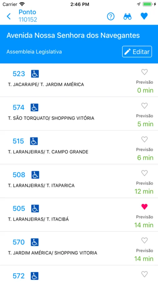 • Favorite um ponto ou uma linha no ponto para ter acesso instantâneo ao abrir o aplicativo;