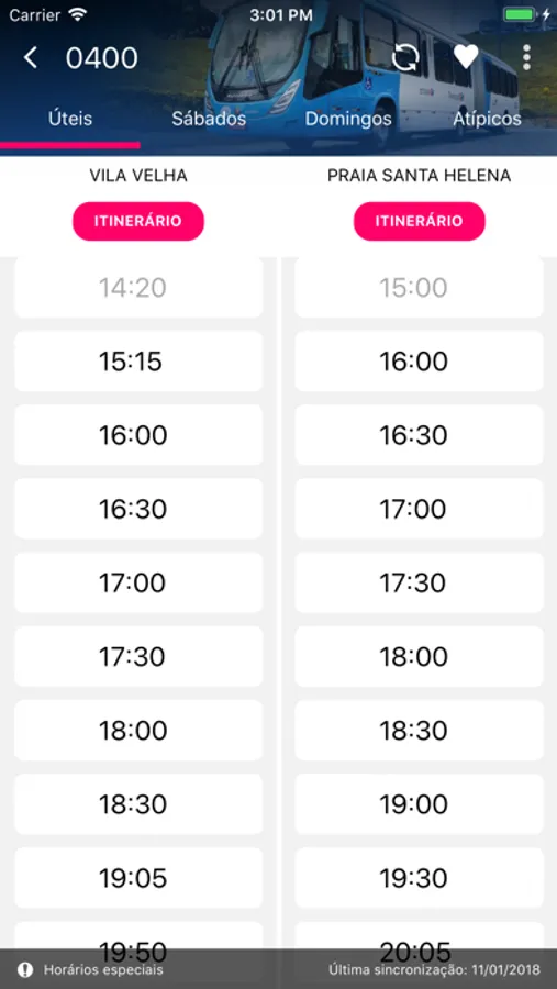 Disponibilidade de horários: Ceturb (Transcol e Seletivo), Sanremo, Ponto Vitória, Planeta e Alvorada - em breve para Lorenzutti Guarapari-ES.