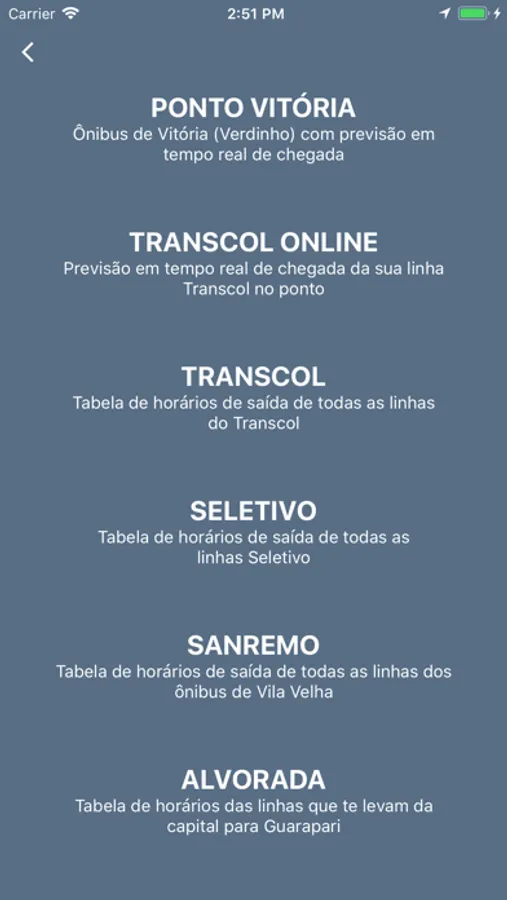 • Consulte os horários e itinerários de todas as linhas de ônibus Ceturb (Transcol e Seletivo), Sanremo, Ponto Vitória, Planeta e Alvorada (inclusive sem internet);