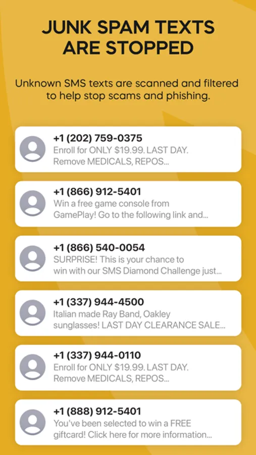 - Protection from text spam and phishing attempts