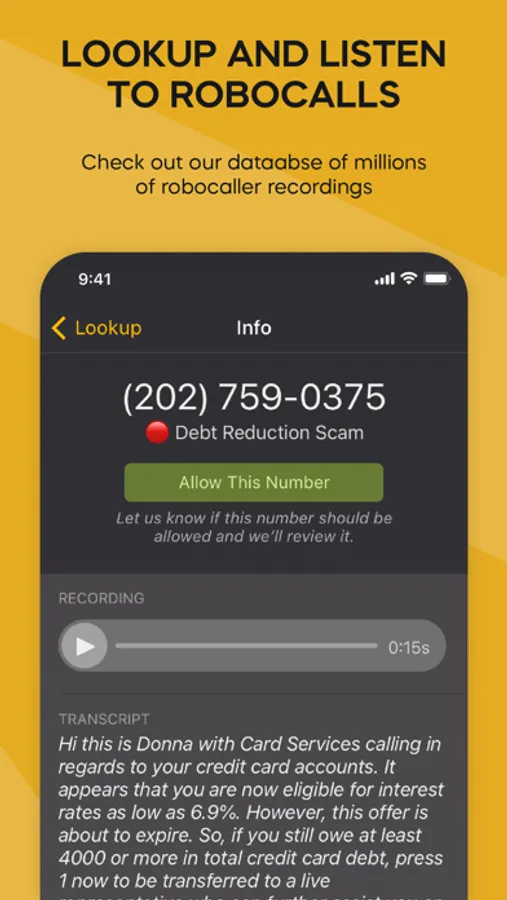 - Listen to thousands of robocall messages in our database