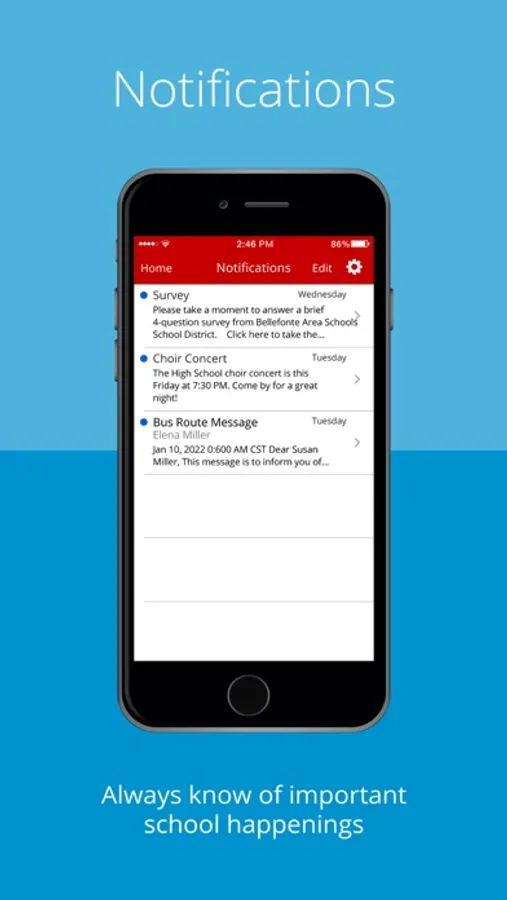 The official Bellefonte Area School District app gives you a personalized window into what is happening at the district and schools. Get the news and information that you care about and get involved!