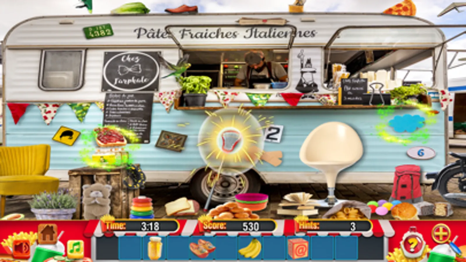 Explore Food Trucks Around the World! Junk food and Foodie themed levels searching amongst famed destinations finding Hidden Objects! Yummy travels to Los Angeles, Chicago, Hawaii, Dallas, New York, Florida, Germany, England and more.