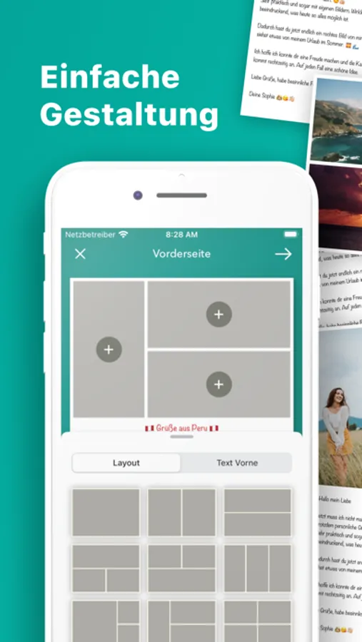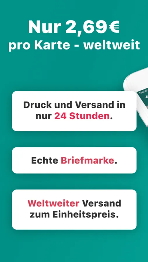 Gestalte und versende echte Postkarten mit deinem iPhone oder iPad.