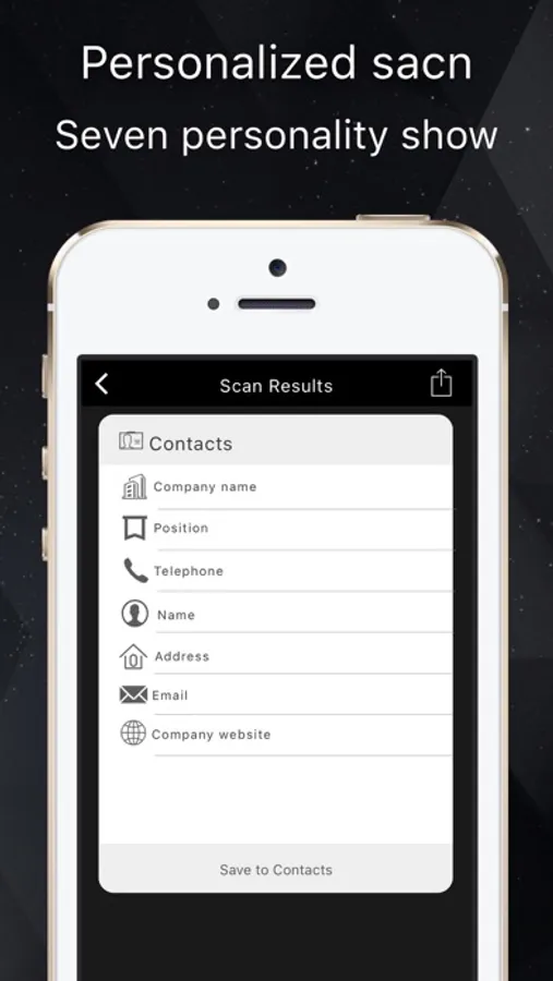 Personalized display the different scan results for text,website,business cards,email,location,information,wifi.