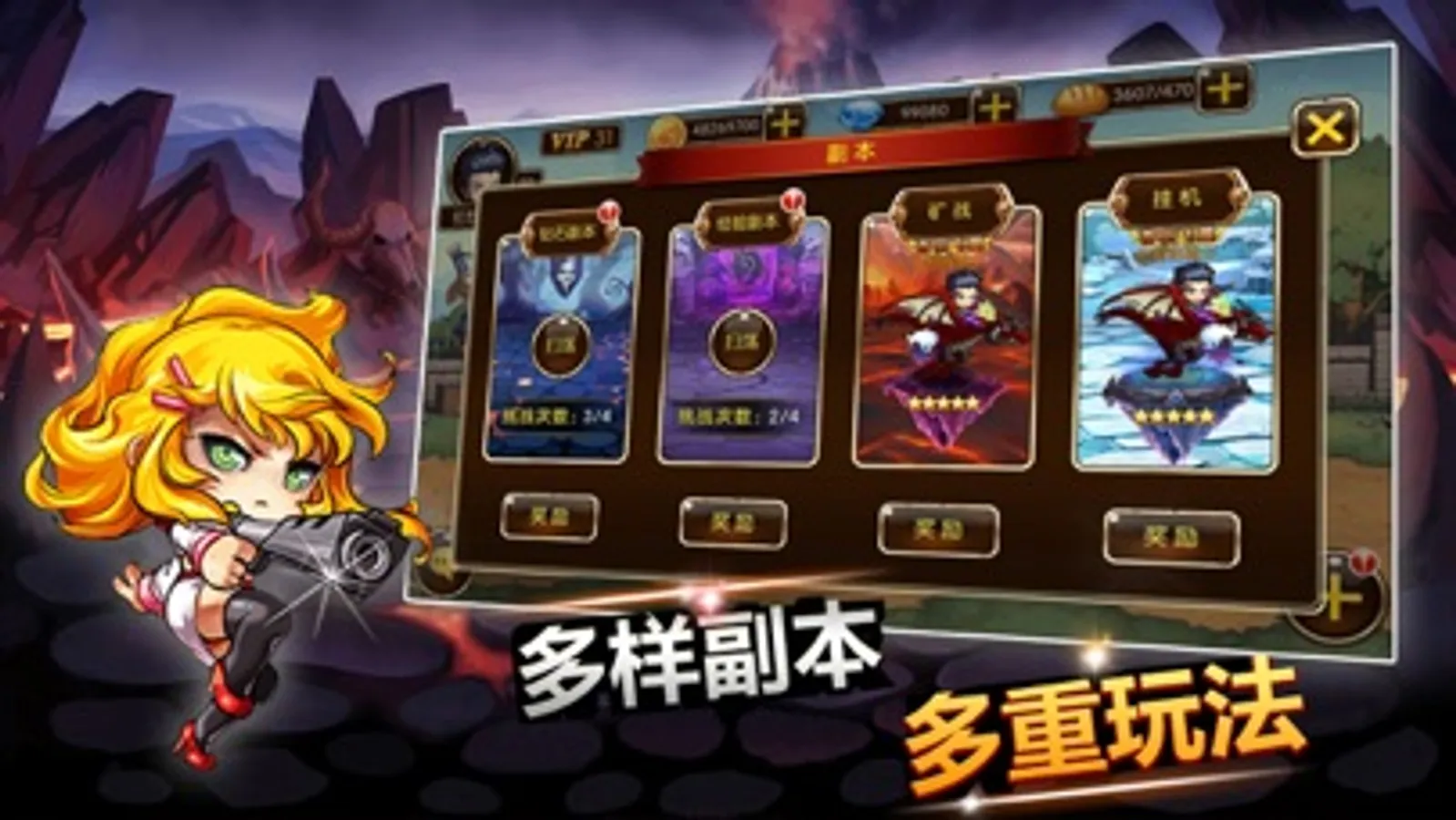 《热血挂机》是一款以Q版英雄乱斗为背景的横版动作卡牌+RPG策略手游,手控技能,极速回合,彻底告别漫长的"无脑"战斗!