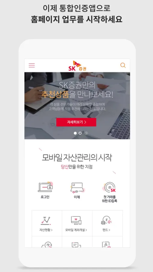 SK증권 통합인증앱이 모바일홈페이지와 만나 새롭게 출시되었습니다.