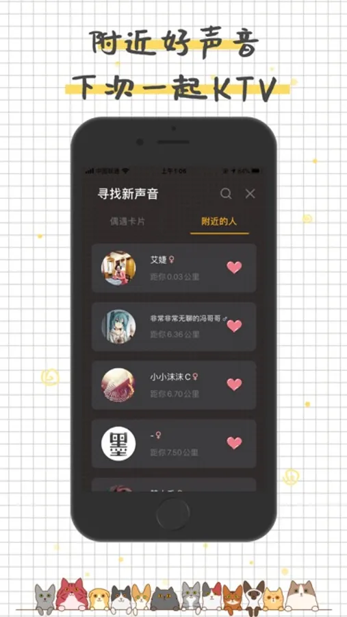 • 互相喜欢对方的声音即可配对为玩唱伙伴