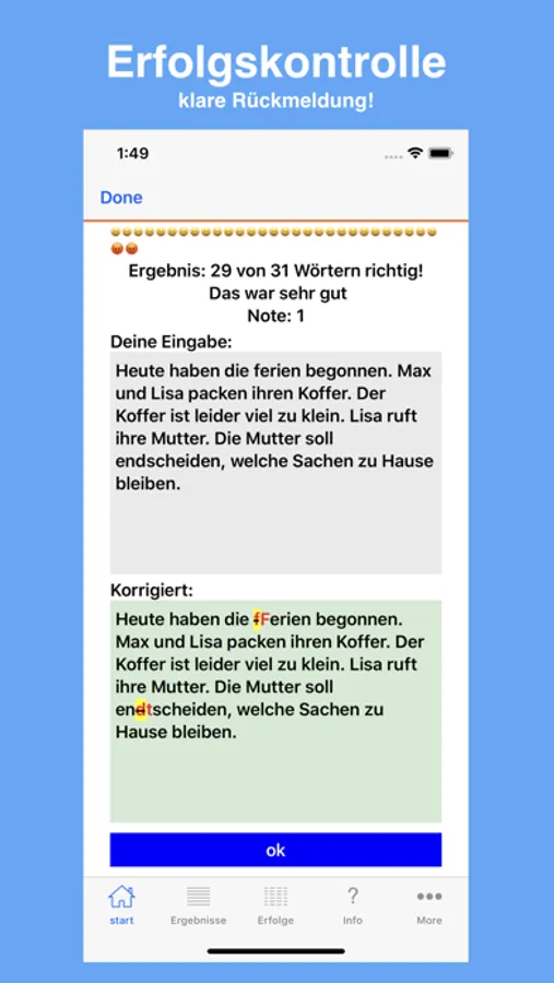Welche Wörter sollte ich extra üben, wo mache ich immer wieder die gleichen Fehler? Um hier anzusetzen, kannst du dir ganz einfach deine früheren Übungsergebnisse anschauen und erkennen wo und wie du dich verbessern kannst.