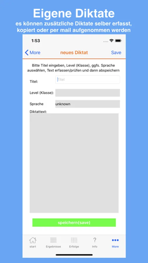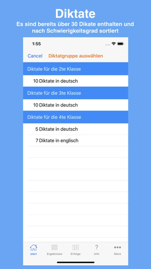 Leider werden Diktate viel zu selten geübt, mit dieser App kannst du es sofort ändern.