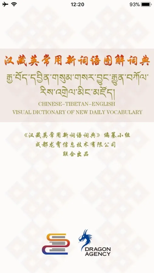 《汉藏英常用新词语图解词典》app,目前来源于《汉藏英常用新词语词典》编纂小组编纂、四川民族出版社和四川出版集团出版的《汉藏英常用新词语图解词典》第一、二册。它是由《汉藏英常用新词语词典》编纂小组和成都龙霄信息技术有限公司联合制作的一款功能丰富的图解词典应用,目前包含了4554个词语,3000多张图片,每个词语除了图片和汉、藏、英三种文字外,还提供了汉语、英语、藏语牧区音、藏语拉萨音和藏语康巴音的读音,是学习这三种语言的好工具。本应用可以分别用汉文、藏文、英文三种文字显示,以方便不同语言的使用者。
