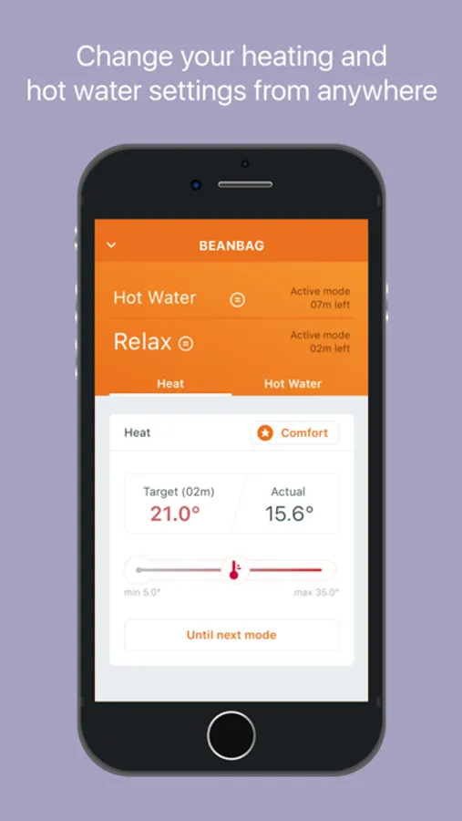 The Beanbag app ensures your comfort and peace of mind by intelligently controlling your heating and hot water at home. It allows you to control your heating from wherever you are.