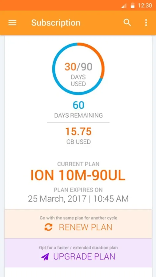 A subscriber can upgrade existing broadband package by clicking on the Upgrade Package button on the home screen. Following options are available