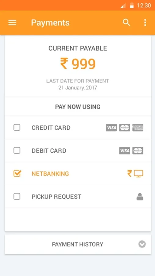 Subscriber can put in a payment pickup request with the company. A date and time can be selected through the option and the same is captured and conveyed to the collection team for further action.