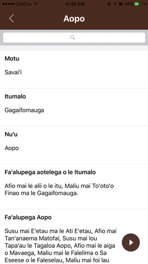 Welcome to MEASINA. The hub where you will find all Samoan treasures. The purpose of this app is to propel the preservation of the Samoan language and culture. Samoa is unique to other cultures and it is something to be proud of and embrace. Our uniqueness is a competitive advantage through our divergent thinking. For many of us living overseas, it is easy to lose the language and culture if we're not immersed in it. There is a real danger of losing our language and culture if we don't practice and know the importance of it to our identity. E lele le toloa ae ma'au i le vai!
