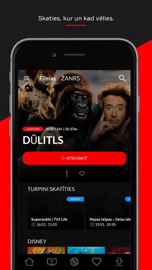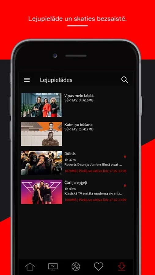 * Lejupielādes funkcija - izbaudi saturu bezsaistes režīmā