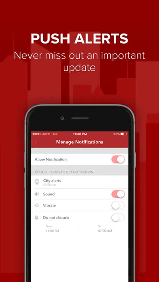 4. Notifications – Get notified on the latest news highlights with push notifications. Choose your quite time and frequency of your notifications