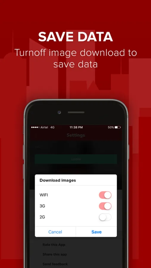 • Save Data – Download images only when you want to. Download them based on your preferred network settings (Wi-Fi, 2G, 3G, 4G)