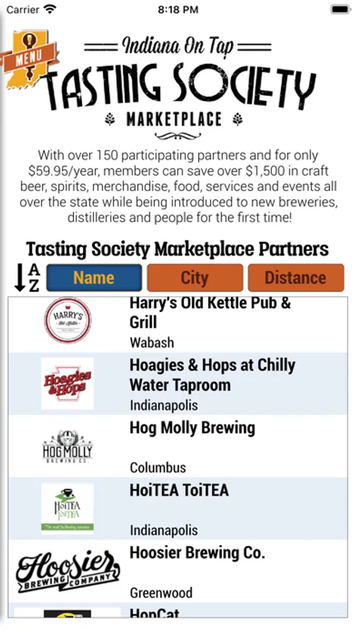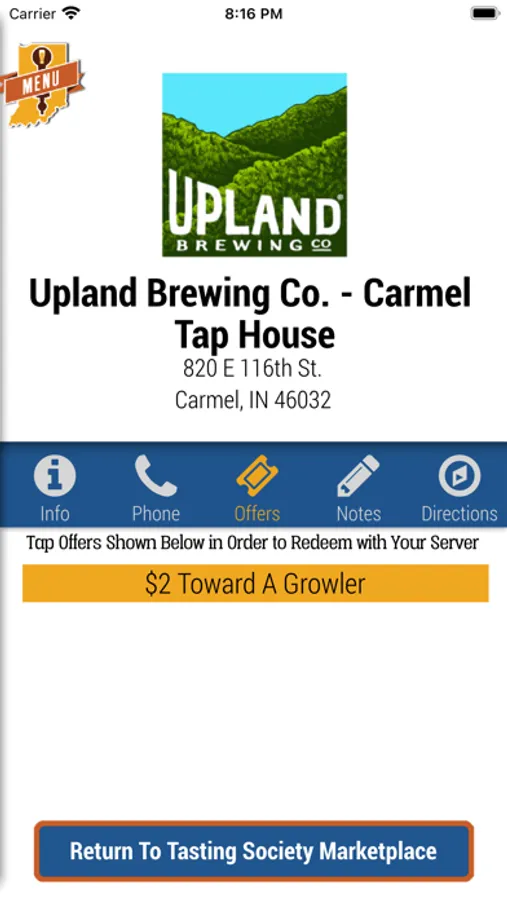 The Indiana On Tap app is the premier app for Indiana craft beer news, information, events and more! It's also the official app of their Tasting Society Marketplace--Indiana's first statewide craft beer membership and rewards program! With the purchase of an annual membership, this portion of the app is used to redeem participating offers all over the state while being introduced to new breweries, beers, Marketplace partners and more while saving HUNDREDS of dollars along the way.