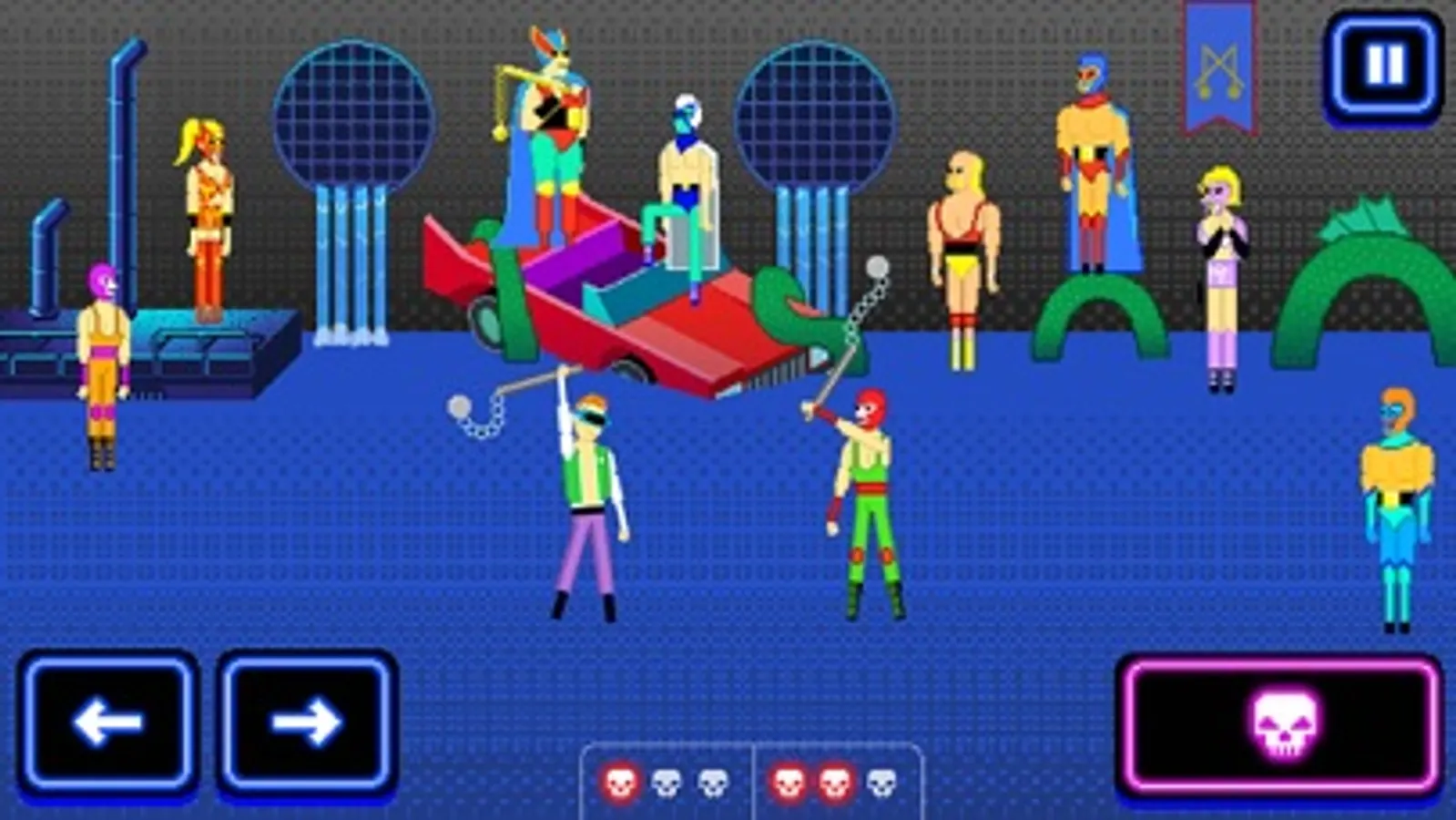 Crush your opponents with different flail-like weapons and share your results with friends.