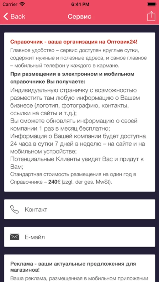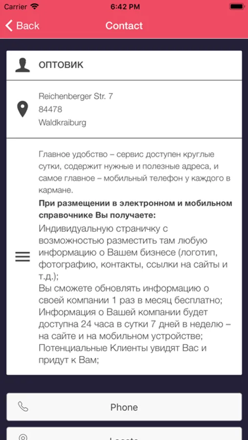 Оптовик24 – это доступный, интерактивный и мобильный сервис для розничных и оптовых предприятий русскоязычного рынка в Германии, представляющий собой мобильное приложение App для установки на айфоне, айпаде, планшете или другом мобильном устройстве на базе iOS, а также сайт в интернете.
