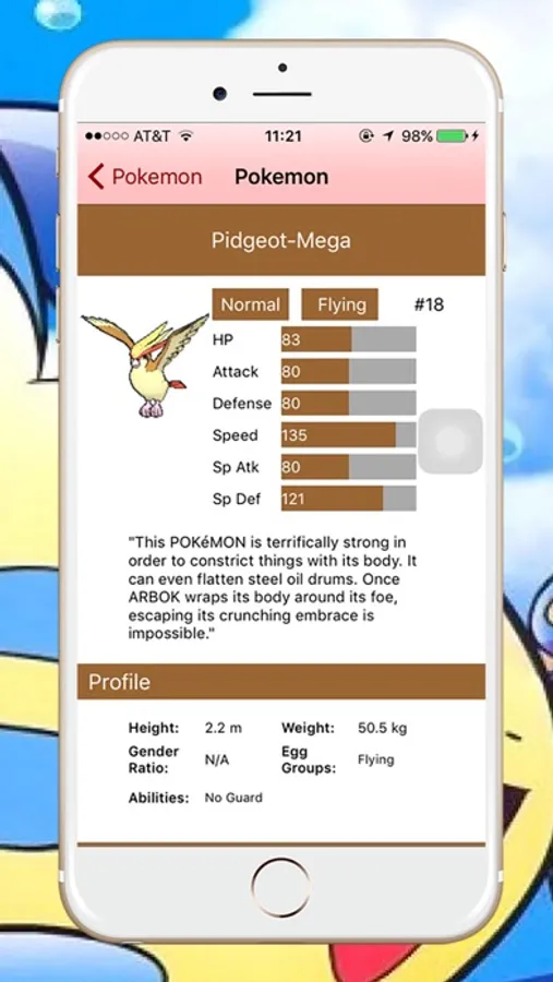 Detailed help & guide information with the basics, such as what the Pokémon looks like, its type, height, weight, and evolutions, and go from there to explore a rich trove of Pokémon details. You can find your Pokémon's stats, its moves, TMs you can use on it, its Abilities, all its Pokédex descriptions, its Egg Group, and even what type of moves are strong against it.