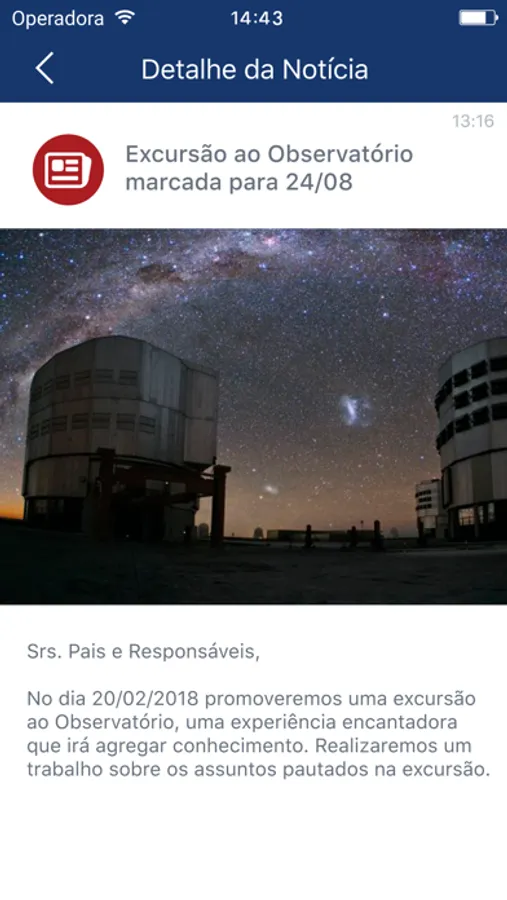 Com este aplicativo, os pais, responsáveis e professores poderão receber as últimas informações da escola, as notícias do dia a dia dos seus filhos e o calendário de atividades escolares.