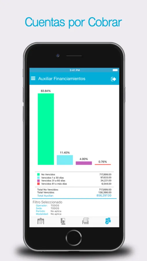 - Visualización de gráficos de auxiliares de cuentas por cobrar
