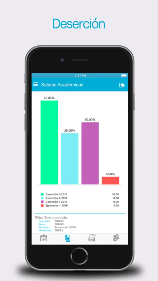 - Con el Gráfico de deserción estudiantil te mantendrás alerta e informado del proceso de tu institución.