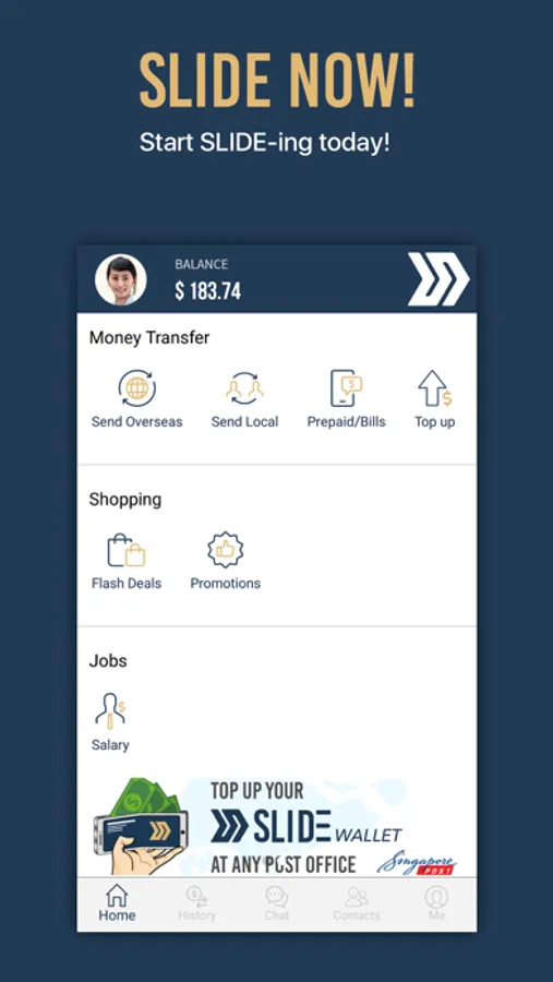 SLIDE is a global social-personal financial mobile application built just for your financial well-being. We believe in instant, fast and easy payments, making life awesome! From anywhere in the world, you can send money to your loved ones, top up any mobile number and pay your bills instantly with just one SLIDE! Your very own virtual wallet in your smartphone! Enjoy great discounts too when you shop in SLIDE Group Buy!