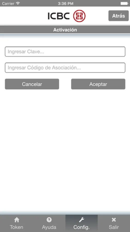 - Ingresá la clave de 6 dígitos de ICBC Token Virtual que generaste en el cajero y el código de asociación que figura en el ticket