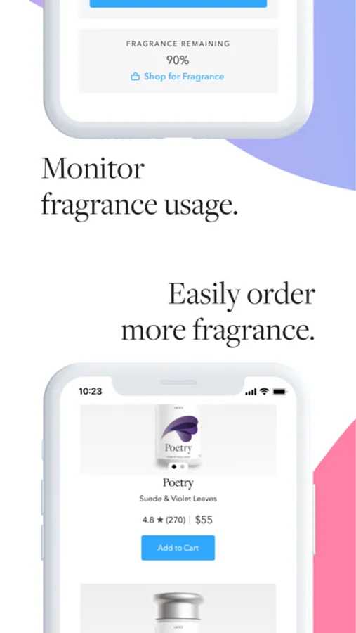 Keep track of fragrance usage and receive helpful reminders when it’s time to re-order.