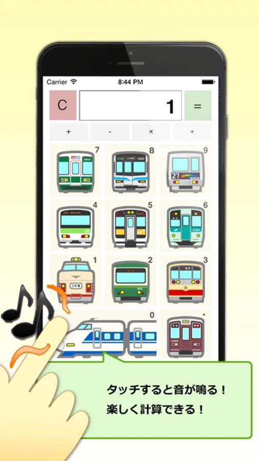 電車のイラストと汽笛の音で楽しく遊びながら計算に慣れていくことができるお子様向け電卓です。