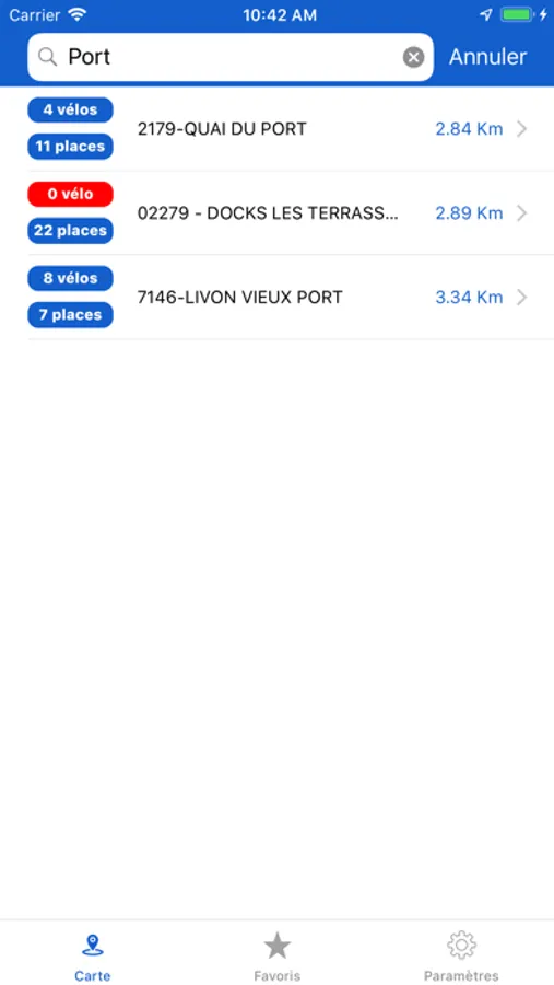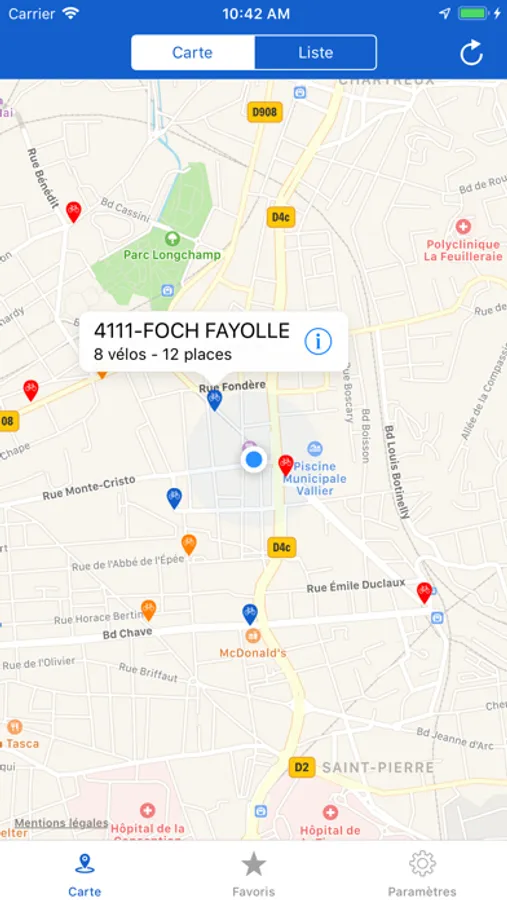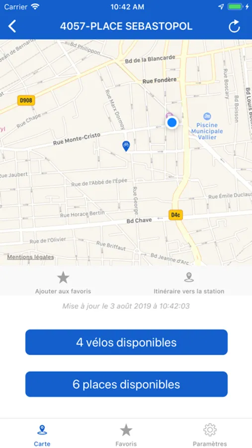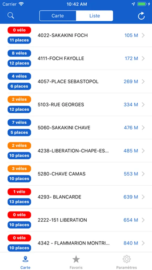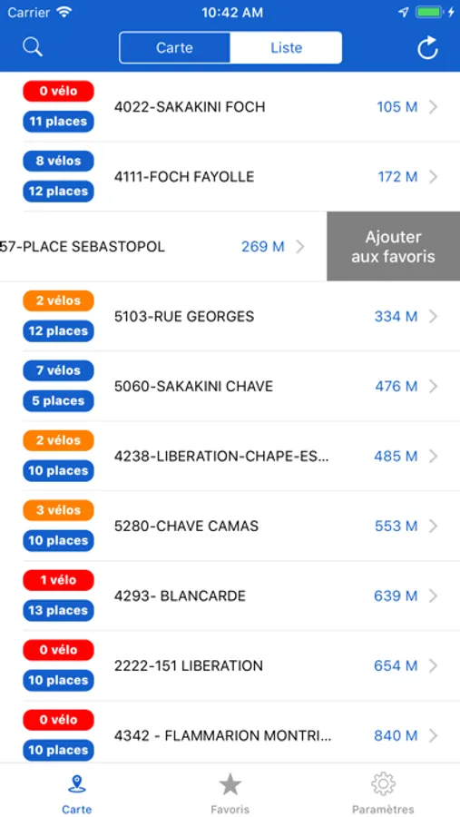 Grâce à la fonction "favoris", vous pourrez garder en mémoire vos stations favorites. Ainsi, vous pourrez consulter en un clic l'état et le stock de la station.