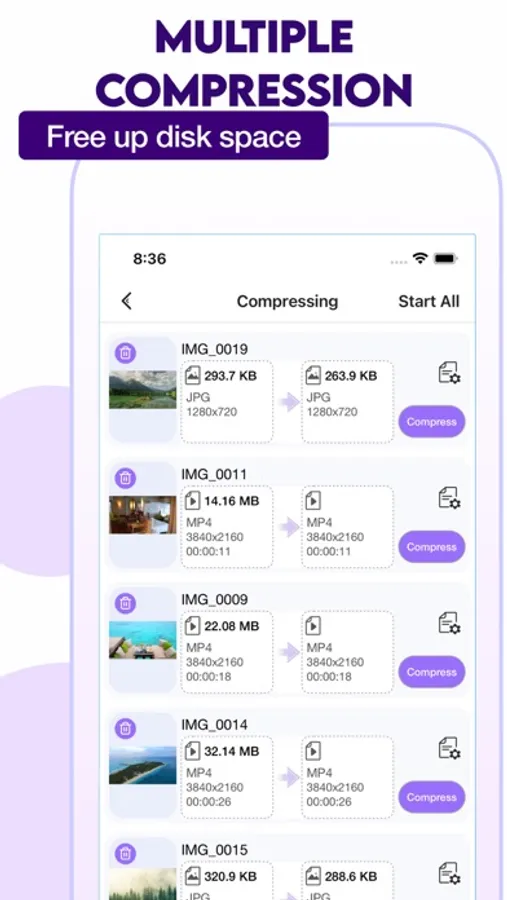 Our app uses the latest video compression technology to ensure that your videos retain their original quality while significantly reducing their size. With just a few clicks, you can easily shrink your video file size and make it more manageable. Whether you're looking to free up space on your device or share your videos more efficiently, our app makes it easy to do both.